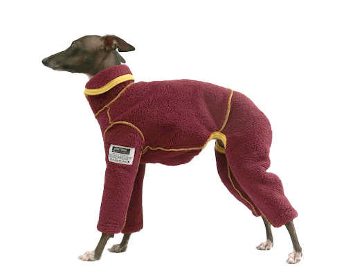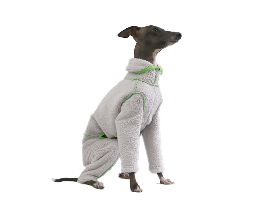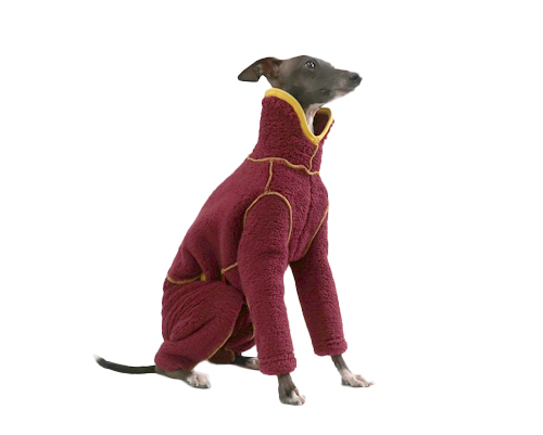 皮膚や被毛への摩擦負担を軽減する目的で、縫い代を表側に出したデザインです。