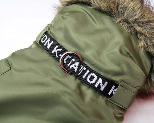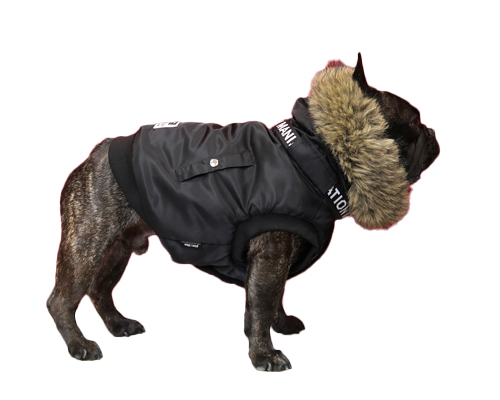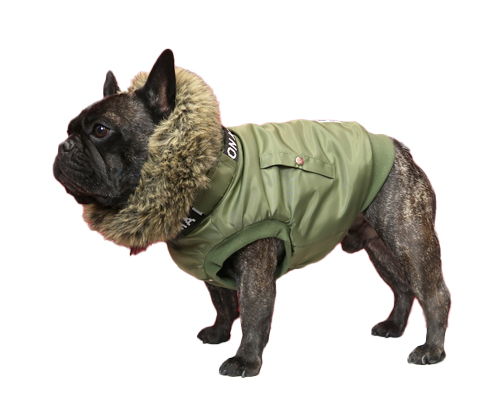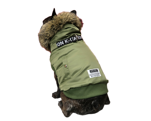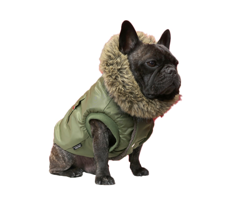 N-3Bフライトジャケットをフレンチブルドック用にアレンジした防寒ウェア。